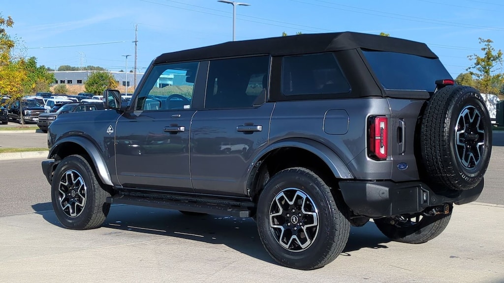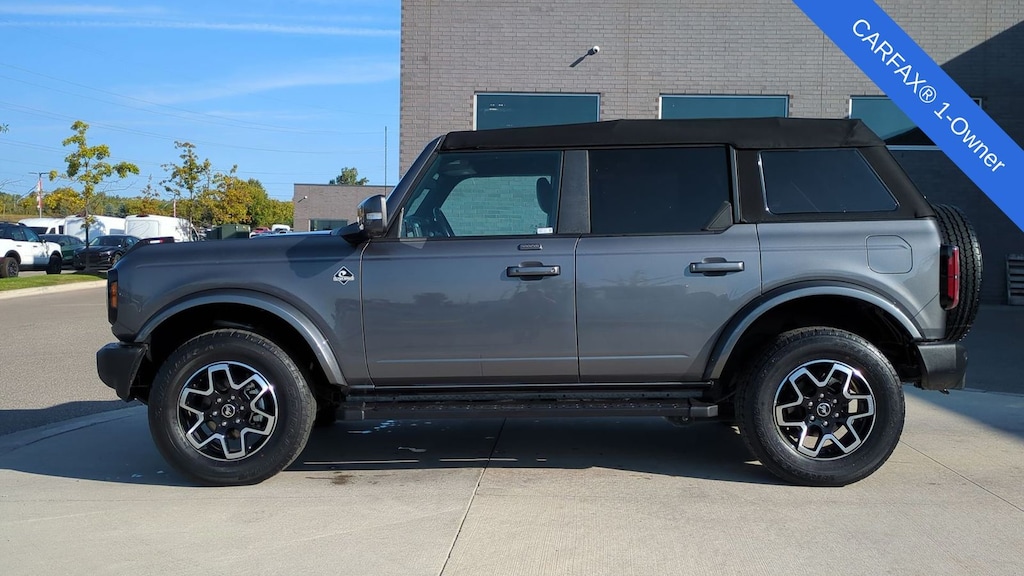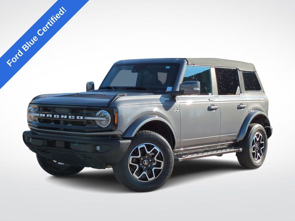 Certified. 2022 Ford Bronco Outer Banks Is nicely equipped with Equipment Group 314A Lux Package (12" LCD Capacitive Touchscreen w/Swipe Capability, 2 Smart Charging USB Ports In Dashboard, 360-Degree Camera, Adaptive Cruise Control, Additional Sound Deadening, Connected Built-In Navigation, Evasive Steering Assist, Front Parking Sensors, Heated Steering Wheel, Information on Demand Panel, Radio: B&O Sound System by Bang & Olufsen, Sideview Mirrors, Universal Garage Door Opener, and Wireless Charging Pad), Ford Blue Advantage: Blue Certified Certified, 18" Bright Machined Aluminum Wheels, 4-Wheel Disc Brakes, 4.27 Axle Ratio, 6 Speakers, ABS brakes, Air Conditioning, Alloy wheels, AM/FM radio: SiriusXM with 360L, AM/FM Stereo, Auto High-beam Headlights, Auto-dimming Rear-View mirror, Automatic temperature control, Brake assist, Carbonized Gray Molded-In-Color Hard Top, Compass, Connected Navigation, Delay-off headlights, Driver door bin, Driver vanity mirror, Dual front impact airbags, Dual front side impact airbags, Electronic Stability Control, Emergency communication system: 911 Assist, Exterior Parking Camera Rear, Front & Rear Floor Liners, Front anti-roll bar, Front Bucket Seats, Front Center Armrest, Front dual zone A/C, Front fog lights, Front reading lights, Front Row Top Panels Storage Bag, Front wheel independent suspension, Fully automatic headlights, Hard Top Sound Deadening Headliner, Heated Cloth Bucket Seats, Heated door mirrors, Heated front seats, Illuminated entry, Integrated roll-over protection, Keyless Entry Keypad, Leather Shift Knob, Low tire pressure warning, Navigation system: Connected Navigation, Occupant sensing airbag, Outside temperature display, Overhead airbag, Overhead console, Panic alarm, Passenger door bin, Passenger vanity mirror, Power door mirrors, Power steering, Power windows, Radio data system, Rear-Window Defroster & Washer, Remote keyless entry, Security system, SiriusXM Radio w/360L, Speed control, Split folding rear seat, Steering wheel mounted audio controls, SYNC 4, Tachometer, Telescoping steering wheel, Tilt steering wheel, Traction control, Trip computer, Variably intermittent wipers, and Voltmeter.