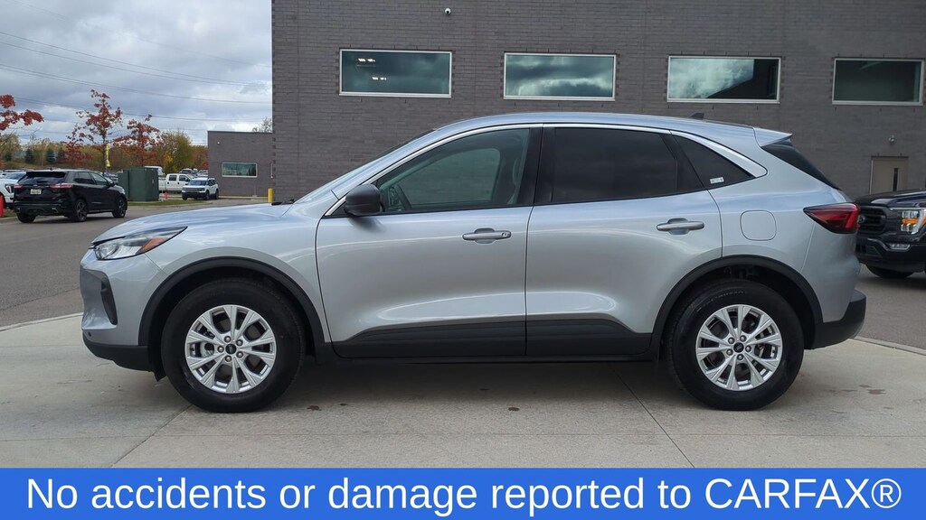 Clean CARFAX. Certified. 2023 Ford Escape Active Is nicely equipped with Equipment Group 200A, Ford Blue Certified Certified, AWD, 3.81 Axle Ratio, 4-Wheel Disc Brakes, 6 Speakers, ABS brakes, Air Conditioning, Alloy wheels, AM/FM radio: SiriusXM, AM/FM Stereo, Auto High-beam Headlights, Automatic temperature control, Brake assist, Bumpers: body-color, Compass, Delay-off headlights, Driver door bin, Driver vanity mirror, Dual front impact airbags, Dual front side impact airbags, Electronic Stability Control, Emergency communication system: SYNC 4 911 Assist, Exterior Parking Camera Rear, FordPass Connect, Four wheel independent suspension, Front anti-roll bar, Front Bucket Seats, Front Center Armrest, Front dual zone A/C, Front reading lights, Fully automatic headlights, Heated door mirrors, Heated front seats, Heated steering wheel, Illuminated entry, Knee airbag, Low tire pressure warning, Occupant sensing airbag, Outside temperature display, Overhead airbag, Overhead console, Panic alarm, Passenger door bin, Passenger vanity mirror, Power door mirrors, Power driver seat, Power Liftgate, Power steering, Power windows, Radio data system, Rear anti-roll bar, Rear reading lights, Rear seat center armrest, Rear window defroster, Rear window wiper, Remote keyless entry, Speed control, Speed-sensing steering, Speed-Sensitive Wipers, Split folding rear seat, Spoiler, Steering wheel mounted audio controls, SYNC 4, Tachometer, Telescoping steering wheel, Tilt steering wheel, Traction control, Trip computer, Unique Cloth Front Bucket Seats, Variably intermittent wipers, and Wheels: 17" Shadow Silver-Painted Aluminum.
