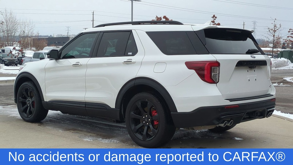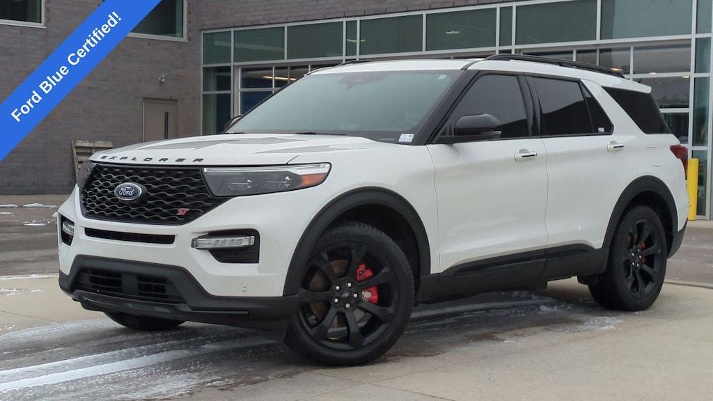 Clean CARFAX. Certified. 2023 Ford Explorer ST Is nicely equipped with Equipment Group 401A, Ford Co-Pilot360 Assist+ (Evasive Steering Assist, Intelligent Adaptive Cruise Control, Speed Sign Recognition, and Voice-Activated Touchscreen Navigation System), ST Appearance Package (Front & Rear Carpet Floor Mats and Leather Seating Surface Sprt Captain's Chairs), ST High Package (110V/150W AC Power Outlet, 360-Degree Camera w/Split View, Auto-Dimming Rearview Mirror (Interior), Front Parking Sensors, Front Rain-Sensing Wipers, Memory Driver's Seat, Power Tilt/Telescoping Steering Column, Radio: B&O Sound System by Bang & Olufsen, Reverse Brake Assist, Second Row Heated Seats, Sideview Mirrors w/Gloss Black Caps, Third Row PowerFold (Folds Flat), Universal Garage Door Opener (UGDO), and Wireless Charging Pad), ST Street Pack (Performance Front & Rear Brakes and Wheels: 21" Aluminum), Technology Package (10.1" LCD Capacitive Portrait Touchscreen and 2 Additional Speakers), Ford Blue Advantage: Blue Certified Certified, 4WD, 20" Machined Aluminum w/Painted Pockets Wheels, 3.58 Non-Limited-Slip Rear Axle Ratio, 3rd row seats: bench, 4-Wheel Disc Brakes, 4G LTE Wi-Fi Hotspot Credit, 6 Speakers, ABS brakes, Air Conditioning, Alloy wheels, AM/FM radio: SiriusXM, AM/FM Stereo, Auto High-beam Headlights, Automatic temperature control, Brake assist, Bumpers: body-color, Compass, Delay-off headlights, Driver door bin, Driver vanity mirror, Dual front impact airbags, Dual front side impact airbags, Electronic Stability Control, Emergency communication system: SYNC 3 911 Assist, Exterior Parking Camera Rear, FordPass Connect, Four wheel independent suspension, Front anti-roll bar, Front Bucket Seats, Front Center Armrest, Front dual zone A/C, Front fog lights, Front reading lights, Fully automatic headlights, Heated door mirrors, Heated front seats, Heated steering wheel, Illuminated entry, Knee airbag, Leather Htd/Ventilated Sport Captain's Chairs, Leather steering wheel, Low tire pressure warning, Memory seat, Occupant sensing airbag, Outside temperature display, Overhead airbag, Overhead console, Panic alarm, Passenger door bin, Passenger vanity mirror, Power door mirrors, Power driver seat, Power Liftgate, Power passenger seat, Power steering, Power windows, Rear air conditioning, Rear anti-roll bar, Rear reading lights, Rear window defroster, Rear window wiper, Remote keyless entry, Security system, SelectShift Capability w/Paddle Shifters, Speed control, Speed-sensing steering, Speed-Sensitive Wipers, Split folding rear seat, Spoiler, Sport steering wheel, Steering wheel mounted audio controls, SYNC 3 Communications & Entertainment System, SYNC 3/Apple CarPlay/Android Auto, Tachometer, Telescoping steering wheel, Tilt steering wheel, Traction control, Trip computer, Twin Panel Moonroof, Variably intermittent wipers, and Ventilated front seats.