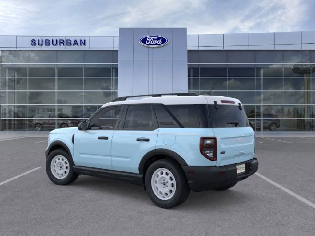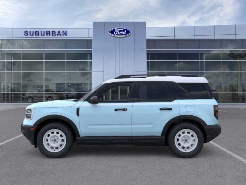 2025 Ford Bronco Sport Heritage Is nicely equipped with Convenience Package (Front Driver/Passenger Seat Back Map Pockets, Heated 8-Way Power Driver's Seat, LED Fog Lamps, Premium Wrapped Steering Wheel, and Universal Garage Door Opener (UGDO)), Equipment Group 250A, 4-Wheel Disc Brakes, 6 Speakers, ABS brakes, Air Conditioning, Alloy wheels, AM/FM radio: SiriusXM, AM/FM Stereo, Auto High-beam Headlights, Automatic temperature control, Brake assist, Compass, Delay-off headlights, Driver door bin, Driver vanity mirror, Dual front impact airbags, Dual front side impact airbags, Electronic Stability Control, Emergency communication system: SYNC 4 911 Assist, First Aid Kit, Four wheel independent suspension, Front anti-roll bar, Front Bucket Seats, Front Center Armrest, Front reading lights, Fully automatic headlights, Heated door mirrors, Illuminated entry, Knee airbag, Low tire pressure warning, Occupant sensing airbag, Outside temperature display, Overhead airbag, Overhead console, Panic alarm, Passenger door bin, Passenger vanity mirror, Plaid Cloth Front Bucket Seats, Power door mirrors, Power Moonroof, Power steering, Power windows, Radio data system, Rear anti-roll bar, Rear Parking Sensors, Rear reading lights, Rear seat center armrest, Rear window defroster, Rear window wiper, Remote keyless entry, Security system, SiriusXM, Speed control, Speed-sensing steering, Speed-Sensitive Wipers, Split folding rear seat, Steering wheel mounted audio controls, SYNC 4 w/Enhanced Voice Recognition, Tachometer, Telescoping steering wheel, Tilt steering wheel, Traction control, Trip computer, Variably intermittent wipers, and Wheels: 17" Oxford White-Painted Aluminum. Factory MSRP: $40,015 Dealer Discount of $2,269 off MSRP