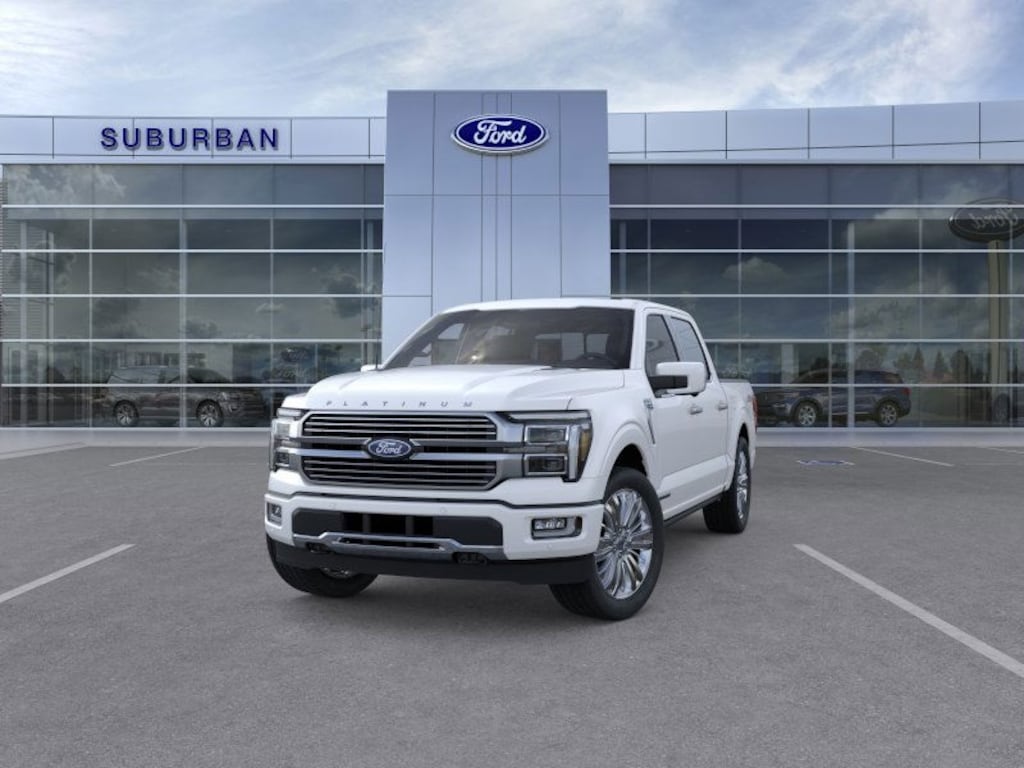 Recent Arrival! $9,457 off MSRP! 2025 Ford F-150 4WD Platinum Star White Metallic Tri-Coat 10-Speed Automatic 3.5L PowerBoost Full-Hybrid V6 WIth Some Available Options Like 4-Wheel Disc Brakes, 8 Speakers, ABS brakes, Adjustable pedals, Air Conditioning, Alloy wheels, AM/FM radio: SiriusXM with 360L, Auto High-beam Headlights, Auto tilt-away steering wheel, Auto-dimming door mirrors, Auto-dimming Rear-View mirror, Automatic temperature control, Brake assist, Bumpers: body-color, Compass, Delay-off headlights, Driver door bin, Driver vanity mirror, Dual front impact airbags, Dual front side impact airbags, Electronic Stability Control, Emergency communication system: SYNC 4 911 Assist, Front anti-roll bar, Front Bucket Seats, Front Center Armrest, Front dual zone A/C, Front fog lights, Front reading lights, Front wheel independent suspension, Fully automatic headlights, Garage door transmitter, Heated door mirrors, Heated front seats, Heated rear seats, Heated steering wheel, Illuminated entry, Leather steering wheel, Low tire pressure warning, Memory seat, Navigation system: Connected Navigation, Occupant sensing airbag, Outside temperature display, Overhead airbag, Overhead console, Panic alarm, Passenger door bin, Passenger vanity mirror, Pedal memory, Power door mirrors, Power driver seat, Power passenger seat, Power steering, Power windows, Radio data system, Radio: B&O Sound System by Bang & Olufsen, Rain sensing wipers, Rear reading lights, Rear seat center armrest, Rear step bumper, Rear window defroster, Remote keyless entry, Security system, Speed control, Split folding rear seat, Steering wheel memory, Steering wheel mounted audio controls, SYNC 4 w/Enhanced Voice Recognition, Tachometer, Telescoping steering wheel, Tilt steering wheel, Traction control, Trip computer, Turn signal indicator mirrors, Unique Multi-Contour Leather Bucket Seats, Variably intermittent wipers, Ventilated front seats, Voltmeter, and Wheels: 20" Painted Gloss Ebony Black.
