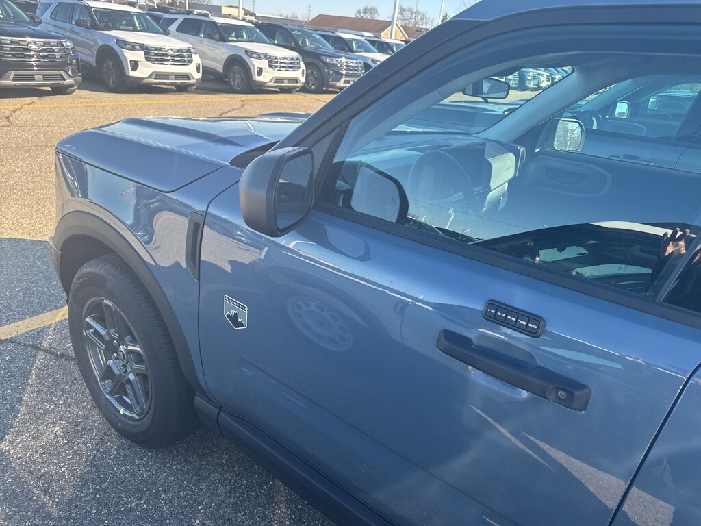 Bronco Sport Big Bend is nicely equipped with Convenience Package (Front Driver/Passenger Seat Back Map Pockets, Heated 8-Way Power Driver's Seat, LED Fog Lamps, and Premium Wrapped Steering Wheel), Equipment Group 200A Standard Package (AM/FM Stereo, Cloth with Easy-to-Clean Front Bucket Seats, SiriusXM with 360L, SYNC 4 with Enhanced Voice Recognition, and Wheels: 17" Carbonized Gray Painted Aluminum), Ford Connectivity Package (1-Year Included), Internet access capable: 5G Modem - Ford Connectivity Package, 4-Wheel Disc Brakes, 6 Speakers, ABS brakes, Air Conditioning, Alloy wheels, AM/FM radio: SiriusXM with 360L, Apple CarPlay/Android Auto, Auto High-beam Headlights, Automatic temperature control, Brake assist, Compass, Delay-off headlights, Driver door bin, Driver vanity mirror, Dual front impact airbags, Dual front side impact airbags, Electronic Stability Control, Emergency communication system: SYNC 4 911 Assist, Exterior Parking Camera Rear, Four wheel independent suspension, Front anti-roll bar, Front Bucket Seats, Front Center Armrest, Front reading lights, Fully automatic headlights, Heated door mirrors, Illuminated entry, Knee airbag, Liftgate with Black BRONCO SPORT Lettering, Low tire pressure warning, Occupant sensing airbag, Outside temperature display, Overhead airbag, Overhead console, Panic alarm, Passenger door bin, Passenger vanity mirror, Power door mirrors, Power steering, Power windows, Radio data system, Rear anti-roll bar, Rear Parking Sensors, Rear reading lights, Rear seat center armrest, Rear window defroster, Rear window wiper, Remote keyless entry, Security system, Speed control, Speed-sensing steering, Speed-Sensitive Wipers, Split folding rear seat, Steering wheel mounted audio controls, Tachometer, Telescoping steering wheel, Tilt steering wheel, Traction control, Trip computer, and Variably intermittent wipers.