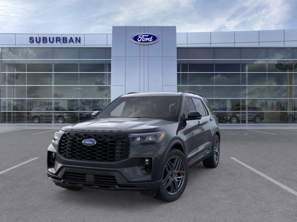Recent Arrival! 2026 Ford Explorer ST-Line Is nicely equipped with Equipment Group 300A Standard Package, Premium Package (110V/150W AC Power Outlet, 2nd Row Heated Seats, Ambient Lighting, Auto-Dimming Interior Rear-View Mirror, Manual-Folding Sideview Mirrors, Memory Driver's Seat, and Rain-Sensing Wipers (Front Only)), ST-Line Street Pack (Performance Brakes, Red Painted Perf Front & Rear Brake Calipers, and Wheels: 21" Magnetite-Painted Aluminum), 4WD, 10 Speakers, 2nd Row Captain's Chairs w/E-Z Entry & Armrest, 3rd row seats: bench, 4-Wheel Disc Brakes, ABS brakes, Air Conditioning, Alloy wheels, AM/FM radio: SiriusXM with 360L, Apple CarPlay/Android Auto, Auto High-beam Headlights, Automatic temperature control, BlueCruise (Equipment + 1-Year + 90-Day Plan), BlueCruise Hardware, Brake assist, Bumpers: body-color, Compass, Delay-off headlights, Driver door bin, Driver vanity mirror, Dual front impact airbags, Dual front side impact airbags, Electronic Stability Control, Emergency communication system: 911 Assist, Exterior Parking Camera Rear, First Aid Kit, Four wheel independent suspension, Front anti-roll bar, Front Bucket Seats, Front Center Armrest, Front dual zone A/C, Front fog lights, Front reading lights, Fully automatic headlights, Garage door transmitter, Heated door mirrors, Heated front seats, Heated steering wheel, Heated Unique Cloth Captain's Chairs, Illuminated entry, Knee airbag, Leather steering wheel, Low tire pressure warning, Navigation System, Occupant sensing airbag, Outside temperature display, Overhead airbag, Overhead console, Panic alarm, Panoramic Fixed Glass Roof w/Power Shade, Passenger door bin, Passenger vanity mirror, Power door mirrors, Power driver seat, Power Liftgate, Power passenger seat, Power steering, Power windows, Radio: B&O Sound System by Bang & Olufsen, Rear air conditioning, Rear anti-roll bar, Rear reading lights, Rear window defroster, Rear window wiper, Remote keyless entry, Security system, Speed control, Speed-sensing steering, Speed-Sensitive Wipers, Split folding rear seat, Spoiler, Steering wheel mounted audio controls, Tachometer, Telescoping steering wheel, Tilt steering wheel, Traction control, Trip computer, Variably intermittent wipers, and Wheels: 20" Ebony-Painted Machined Aluminum. Factory MSRP: $53,910 Dealer Discount of $3,933 off MSRP