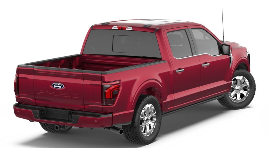 F-150 Platinum is nicely equipped with Equipment Group 702A High (Electronic Locking with 3.55 Axle Ratio, Power-Deployable Running Boards, Radio: B&O Unleashed Sound System by Bang & Olufsen, Unique Multi-Contour Leather Bucket Seats, and Wheels: 20" Painted Gloss Ebony Black), Ford Connectivity Package (1-Year Included), GVWR: 7,400 lbs Payload Package, Internet access capable: 5G Modem - Ford Connectivity Package, Platinum Satin Appearance Package (Satin Single Exhaust), 4WD, 4-Wheel Disc Brakes, 8 Speakers, ABS brakes, Adjustable pedals, Air Conditioning, Alloy wheels, AM/FM radio: SiriusXM with 360L, Auto High-beam Headlights, Auto tilt-away steering wheel, Auto-dimming door mirrors, Auto-dimming Rear-View mirror, Automatic temperature control, Brake assist, Bumpers: body-color, Compass, Delay-off headlights, Driver door bin, Driver vanity mirror, Dual front impact airbags, Dual front side impact airbags, Electronic Stability Control, Emergency communication system: SYNC 4 911 Assist, Front anti-roll bar, Front Bucket Seats, Front Center Armrest, Front dual zone A/C, Front fog lights, Front reading lights, Front wheel independent suspension, Fully automatic headlights, Garage door transmitter, Heated door mirrors, Heated front seats, Heated rear seats, Heated steering wheel, Illuminated entry, Leather steering wheel, Low tire pressure warning, Memory seat, Navigation system: Connected Navigation, Occupant sensing airbag, Outside temperature display, Overhead airbag, Overhead console, Panic alarm, Passenger door bin, Passenger vanity mirror, Pedal memory, Power door mirrors, Power driver seat, Power passenger seat, Power steering, Power windows, Pro Access Tailgate, Radio data system, Radio: B&O Sound System by Bang and Olufsen, Rain sensing wipers, Rear reading lights, Rear seat center armrest, Rear step bumper, Rear window defroster, Remote keyless entry, Security system, Speed control, Split folding rear seat, Steering wheel memory, Steering wheel mounted audio controls, SYNC 4 with Enhanced Voice Recognition, Tachometer, Telescoping steering wheel, Tilt steering wheel, Traction control, Trip computer, Turn signal indicator mirrors, Twin Panel Moonroof, Variably intermittent wipers, and Ventilated front seats.