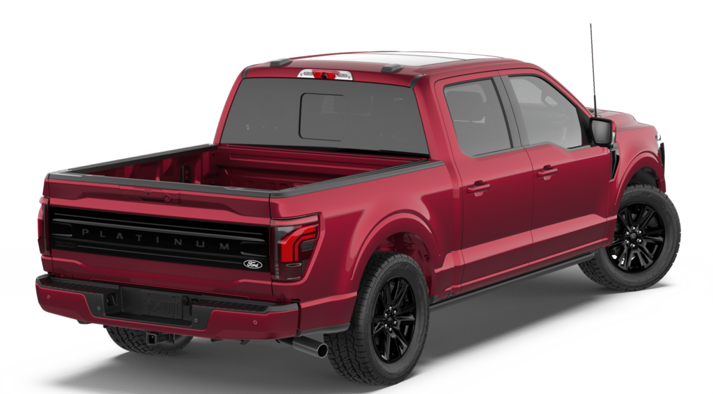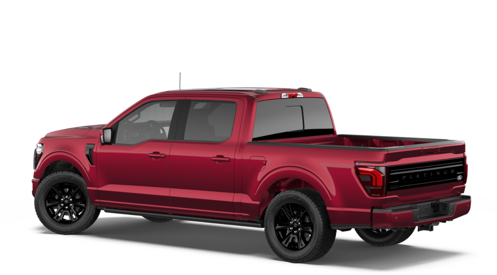 F-150 Platinum is nicely equipped with Equipment Group 702A High (Center High Mounted Stop Lamp (CHMSL) Camera, Electronic Locking with 3.55 Axle Ratio, Power-Deployable Running Boards, Radio: B&O Unleashed Sound System by Bang & Olufsen, Unique Multi-Contour Leather Bucket Seats, and Wheels: 20" Painted Gloss Ebony Black), Ford Connectivity Package (1-Year Included), GVWR: 7,400 lbs Payload Package, Internet access capable: 5G Modem - Ford Connectivity Package, 4WD, 4-Wheel Disc Brakes, 8 Speakers, ABS brakes, Adjustable pedals, Air Conditioning, Alloy wheels, AM/FM radio: SiriusXM with 360L, Auto High-beam Headlights, Auto tilt-away steering wheel, Auto-dimming door mirrors, Auto-dimming Rear-View mirror, Automatic temperature control, Brake assist, Bumpers: body-color, Compass, Delay-off headlights, Driver door bin, Driver vanity mirror, Driver's Side SecuriCode Keyless-Entry Keypad, Dual front impact airbags, Dual front side impact airbags, Electronic Stability Control, Emergency communication system: SYNC 4 911 Assist, Front anti-roll bar, Front Bucket Seats, Front Center Armrest, Front dual zone A/C, Front fog lights, Front reading lights, Front wheel independent suspension, Fully automatic headlights, Garage door transmitter, Heated door mirrors, Heated front seats, Heated rear seats, Heated steering wheel, Illuminated entry, Leather steering wheel, Low tire pressure warning, Memory seat, Navigation system: Connected Navigation, Occupant sensing airbag, Outside temperature display, Overhead airbag, Overhead console, Panic alarm, Passenger door bin, Passenger vanity mirror, Pedal memory, Power door mirrors, Power driver seat, Power passenger seat, Power steering, Power windows, Radio data system, Radio: B&O Sound System by Bang and Olufsen, Rain sensing wipers, Rear reading lights, Rear seat center armrest, Rear step bumper, Rear window defroster, Remote keyless entry, Security system, Speed control, Split folding rear seat, Steering wheel memory, Steering wheel mounted audio controls, SYNC 4 with Enhanced Voice Recognition, Tachometer, Telescoping steering wheel, Tilt steering wheel, Traction control, Trip computer, Turn signal indicator mirrors, Twin Panel Moonroof, Variably intermittent wipers, and Ventilated front seats.