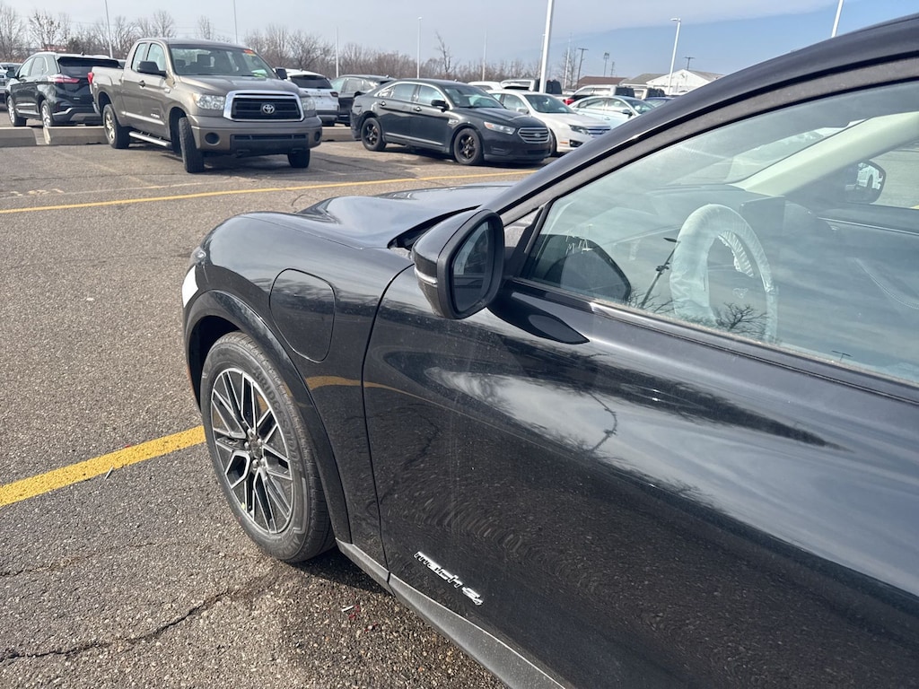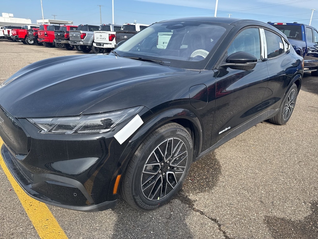 Mustang Mach-E Premium is nicely equipped with ABS brakes, Active Cruise Control, Alloy wheels, Compass, Electronic Stability Control, Front dual zone A/C, Heated door mirrors, Heated front seats, Illuminated entry, Low tire pressure warning, Navigation System, Remote keyless entry, Traction control, 10 Speakers, 4-Wheel Disc Brakes, Air Conditioning, AM/FM radio: SiriusXM with 360L, Apple CarPlay/Android Auto, Auto High-beam Headlights, Auto-dimming Rear-View mirror, Automatic temperature control, Brake assist, Bumpers: body-color, Delay-off headlights, Driver door bin, Driver vanity mirror, Dual front impact airbags, Dual front side impact airbags, Emergency communication system: 911 Assist, Exterior Parking Camera Rear, Four wheel independent suspension, Front anti-roll bar, Front Bucket Seats, Front Center Armrest, Front reading lights, Fully automatic headlights, Heated steering wheel, Heated/Ventilated ActiveX Bucket Seats, Knee airbag, Memory seat, Navigation system: Connected Navigation, Occupant sensing airbag, Outside temperature display, Overhead airbag, Overhead console, Panic alarm, Passenger door bin, Passenger vanity mirror, Power door mirrors, Power driver seat, Power passenger seat, Power steering, Power windows, Radio data system, Radio: B&O Sound System by Bang and Olufsen, Rain sensing wipers, Rear anti-roll bar, Rear seat center armrest, Rear side impact airbag, Rear window defroster, Rear window wiper, Security system, SiriusXM with 360L, Speed control, Speed-sensing steering, Speed-Sensitive Wipers, Split folding rear seat, Spoiler, Steering wheel mounted audio controls, SYNC 4A with Enhanced Voice Recognition, Telescoping steering wheel, Tilt steering wheel, Trip computer, Turn signal indicator mirrors, Variably intermittent wipers, Ventilated front seats, and Wheels: 19" Bright Machined-Face Aluminum.