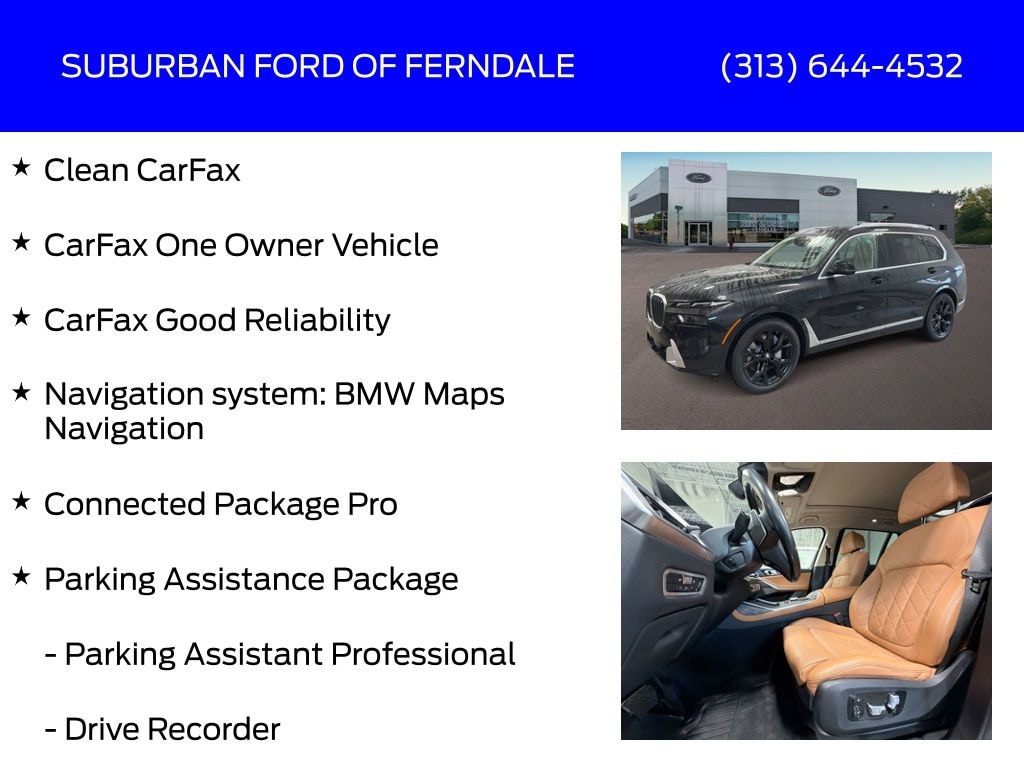 Black Sapphire Metallic 2023 BMW X7 xDrive40i AWD 8-Speed Automatic Sport 3.0L I6 DOHC 24V Clean CarFax, CarFax One Owner Vehicle, CarFax Good Reliability, 5-Zone Automatic Climate Control, Adaptive Suspension, Apple CarPlay & Android Auto Compatibility, Auto High-beam Headlights, Automatic Temperature Control, Climate Comfort Package, Connected Package Pro, Drive Recorder, Exterior Parking Camera Rear, Front & Rear Heated Seats, Front Dual Zone A/C, Front Ventilated Seats, Fully Automatic Headlights, Gesture Control, harman/kardon Surround Sound System, Head restraints memory, Heads-Up Display, Heated External Mirrors, Heated Front Seats, Heated Steering Wheel, Memory Driver Seating, Navigation system: BMW Maps Navigation, Parking Assistance Package, Parking Assistant Professional, Power Driver Seat, Power moonroof: Panorama, Power Passenger Seat, Premium Package, Rear Air Conditioning, Rear dual zone A/C, Rear Electric Side Window Shades, Remote Keyless Entry, Soft-Close Automatic Doors, Surround View w/3D View, Wireless Charging Device.