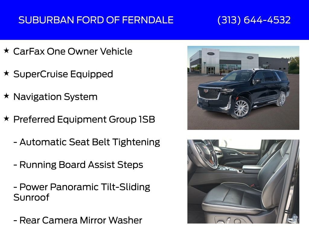 Black Raven 2023 Cadillac Escalade ESV Premium AWD 10-Speed Automatic 6.2L V8 CarFax One Owner Vehicle, SuperCruise Equipped, AWD, Adaptive Cruise Control, AKG Studio 19-Speaker Audio System, Automatic Seat Belt Tightening, Automatic Temperature Control, Door Lock & Latch Shields, Enhanced Automatic Emergency Braking, Enhanced Automatic Parking Assist, Exterior Parking Camera Rear, Front Dual Zone A/C, Fully Automatic Headlights, Glass Breakage Sensor, Heads-Up Display, Heated & Ventilated Driver & Front Passenger Seats, Lane Change Alert w/Side Blind Zone Alert, Mechanical Limited-Slip Differential, Navigation System, Power Liftgate, Power Panoramic Tilt-Sliding Sunroof, Preferred Equipment Group 1SB, Rear Air Conditioning, Rear Camera Mirror, Rear Camera Mirror Washer, Rear Cross Traffic Alert, Rear Window Defroster, Reconfigurable Full-Color Head-Up Display, Remote Keyless Entry, Reverse Automatic Braking, Running Board Assist Steps, Super Cruise, Theft-Deterrent Alarm System, Vehicle Inclination Sensor, Vehicle Interior Movement Sensor.