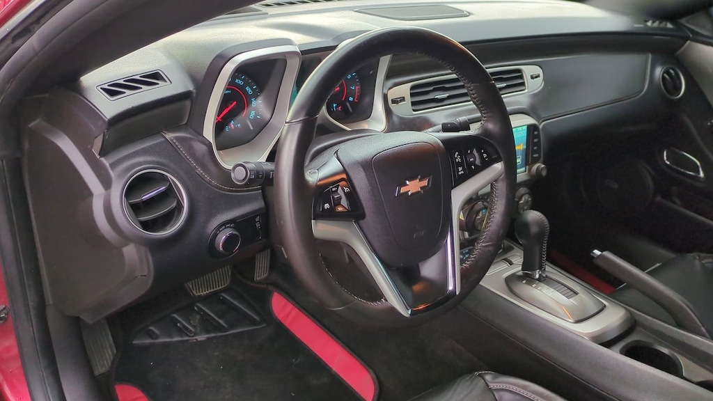 2013 Chevrolet Camaro 2LT 2LT Is nicely equipped with Preferred Equipment Group 2LT (2 Front Cup Holders, 3-Spoke Leather-Wrapped Steering Wheel, 4-Wheel Antilock 4-Wheel Disc Brakes, Analog Instrumentation, Auxiliary Multi-Function Gauges, Boston Acoustics Premium 8-Speaker Audio System, Carpeted Front Floor Mats, Electric Rear-Window Defogger, Electronic Cruise Control, Head-Up Display, Heated Driver & Front Passenger Seats, LATCH System, Leather Seat Trim, Leather-Wrapped Shift Knob, Maintenance-Free Battery, Manual Rake & Telescopic Steering Column, OnStar 6 Months Directions & Connections Plan, Power Programmable Door Locks, Remote Keyless Entry, SIRIUSXM Satellite Radio, StabiliTrak, Stainless-Steel Dual-Outlet Exhaust, Steering Wheel Mounted Audio Controls, Tonneau Cover, Ultrasonic Rear Park Assist, Universal Home Remote, and USB Port Audio System Feature), RS Package (High-Intensity Discharge Headlamps), 19" Painted Aluminum Wheels, 20" x 8" Front & 20" x 9" Rear Aluminum Wheels, 4-Wheel Disc Brakes, 8 Speakers, ABS brakes, Air Conditioning, Alloy wheels, AM/FM radio: SiriusXM, AM/FM Stereo w/Navigation, Auto-dimming door mirrors, Auto-dimming Rear-View mirror, Brake assist, Bumpers: body-color, Cargo Mat, Cargo Net, Compass, Convertible roof lining, Delay-off headlights, Driver door bin, Driver vanity mirror, Dual front impact airbags, Dual front side impact airbags, Electronic Stability Control, Emergency communication system: OnStar Directions & Connections, Four wheel independent suspension, Front anti-roll bar, Front Bucket Seats, Front Center Armrest, Front fog lights, Front reading lights, Front Sport Bucket Seats, Fully automatic headlights, Garage door transmitter, Glass rear window, Heads-Up Display, Heated door mirrors, Heated front seats, Illuminated entry, Leather Seating Surfaces, Leather Shift Knob, Low tire pressure warning, Occupant sensing airbag, Outside temperature display, Panic alarm, Passenger door bin, Passenger vanity mirror, Power convertible roof, Power door mirrors, Power driver seat, Power passenger seat, Power steering, Power windows, Radio data system, Radio: AM/FM Stereo w/Color Touch, Rear anti-roll bar, Rear window defroster, Remote keyless entry, Remote Vehicle Starter System, Security system, Speed control, Speed-sensing steering, Spoiler, Steering wheel mounted audio controls, Tachometer, Telescoping steering wheel, Tilt steering wheel, Traction control, Trip computer, Variably intermittent wipers, and Voltmeter.