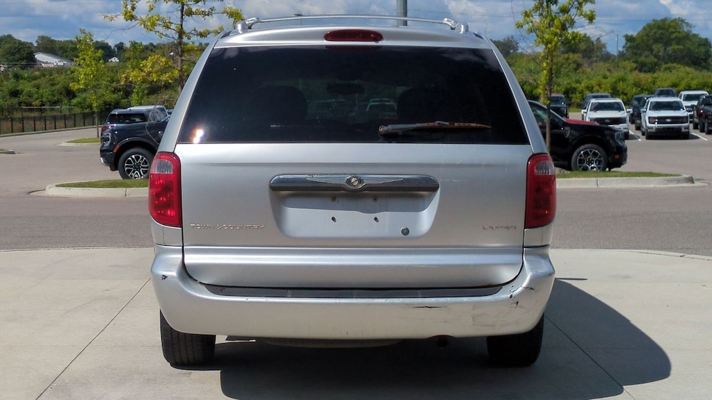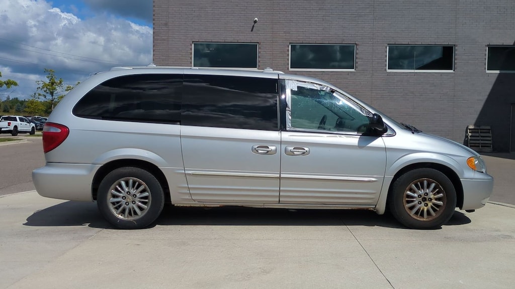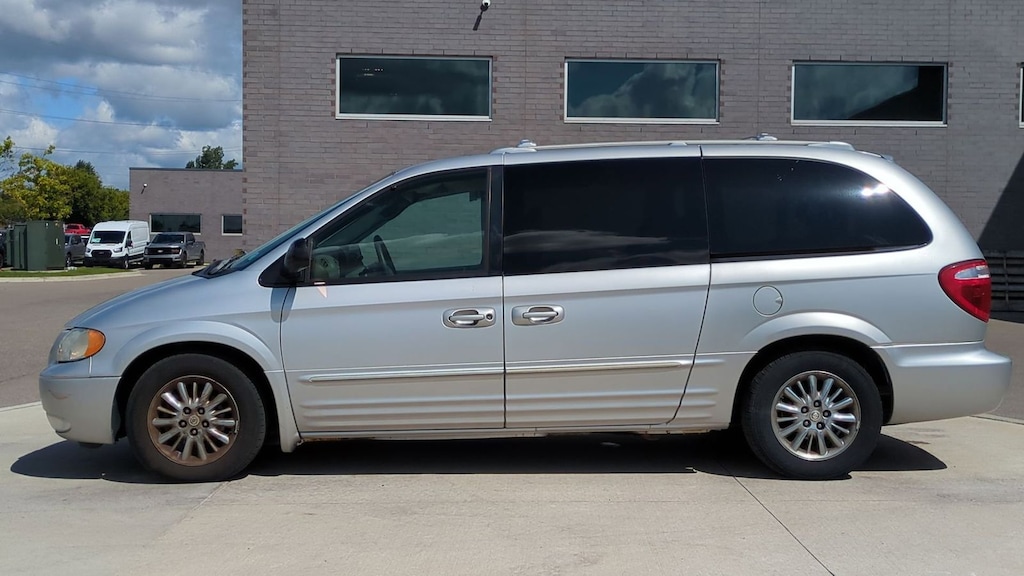 2003 Chrysler Town & Country Limited Is nicely equipped with Sandstone Leather, 10 Speakers, 16" x 6.5" Chrome Clad Aluminum Wheels, 3.43 Axle Ratio, 3rd row seats: split-bench, 4-Wheel Disc Brakes, ABS brakes, Air Conditioning, Alloy wheels, AM/FM Cassette w/Changer Control, AM/FM radio, Audio memory, Auto-dimming door mirrors, Auto-dimming Rear-View mirror, Automatic temperature control, Bumpers: body-color, Cassette, Compass, Delay-off headlights, Driver door bin, Driver vanity mirror, Driver's Seat Mounted Armrest, Dual front impact airbags, Dual front side impact airbags, Front anti-roll bar, Front Bucket Seats, Front dual zone A/C, Front fog lights, Front reading lights, Front wheel independent suspension, Fully automatic headlights, Garage door transmitter, Heated door mirrors, Heated front seats, Illuminated entry, Leather steering wheel, Low tire pressure warning, Luxury Leather Low-Back Bucket Seats, Memory seat, Normal Duty Suspension, Outside temperature display, Overhead console, Panic alarm, Passenger door bin, Passenger seat mounted armrest, Passenger vanity mirror, Power door mirrors, Power driver seat, Power Liftgate, Power passenger seat, Power steering, Power windows, Radio data system, Rear air conditioning, Rear reading lights, Rear window defroster, Rear window wiper, Remote CD player, Remote keyless entry, Roof rack, Security system, Speed control, Split folding rear seat, Steering wheel mounted audio controls, Tachometer, Tilt steering wheel, Traction control, Trip computer, and Variably intermittent wipers.
