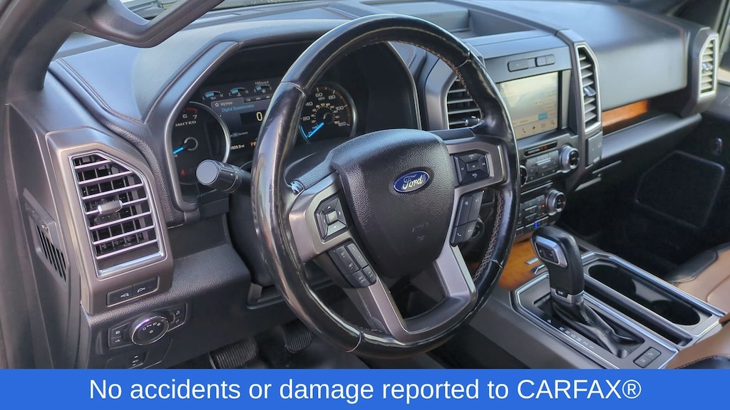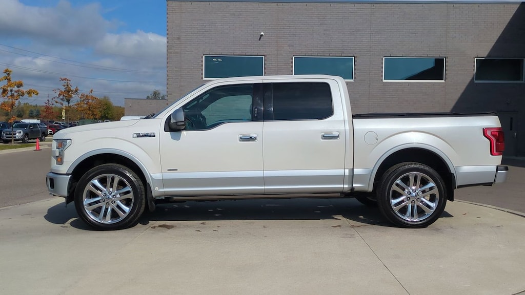 2016 Ford F-150 Limited Is nicely equipped with Equipment Group 900A Base, GVWR: 6,750 lbs Payload Package, 4WD, ABS brakes, Active Cruise Control, Alloy wheels, Compass, Electronic Stability Control, Front dual zone A/C, Heated door mirrors, Heated front seats, Heated rear seats, Illuminated entry, Low tire pressure warning, Navigation System, Remote keyless entry, Traction control, Voice-Activated Navigation, 10 Speakers, 22" Polished Aluminum Wheels, 3.31 Axle Ratio, 4-Wheel Disc Brakes, Adjustable pedals, Air Conditioning, AM/FM radio: SiriusXM, Auto High-beam Headlights, Auto tilt-away steering wheel, Auto-dimming door mirrors, Auto-dimming Rear-View mirror, Automatic temperature control, Brake assist, Bumpers: chrome, CD player, Delay-off headlights, Driver door bin, Driver vanity mirror, Dual front impact airbags, Dual front side impact airbags, Exterior Parking Camera Rear, Front anti-roll bar, Front Bucket Seats, Front Center Armrest, Front fog lights, Front reading lights, Front wheel independent suspension, Fully automatic headlights, Garage door transmitter, Genuine wood door panel insert, Heated steering wheel, Memory seat, Occupant sensing airbag, Outside temperature display, Overhead airbag, Overhead console, Panic alarm, Passenger door bin, Passenger vanity mirror, Pedal memory, Power door mirrors, Power driver seat, Power moonroof: Vista Roof, Power passenger seat, Power steering, Power windows, Radio data system, Radio: Sony Single CD w/HD & SiriusXM Satellite, Rain sensing wipers, Rear Parking Sensors, Rear reading lights, Rear seat center armrest, Rear step bumper, Rear window defroster, Security system, Speed control, Speed-sensing steering, Split folding rear seat, Steering wheel memory, Steering wheel mounted audio controls, SYNC 3, Tachometer, Telescoping steering wheel, Tilt steering wheel, Trip computer, Turn signal indicator mirrors, Unique Leather Bucket Seats, Variably intermittent wipers, Ventilated front seats, and Voltmeter.
