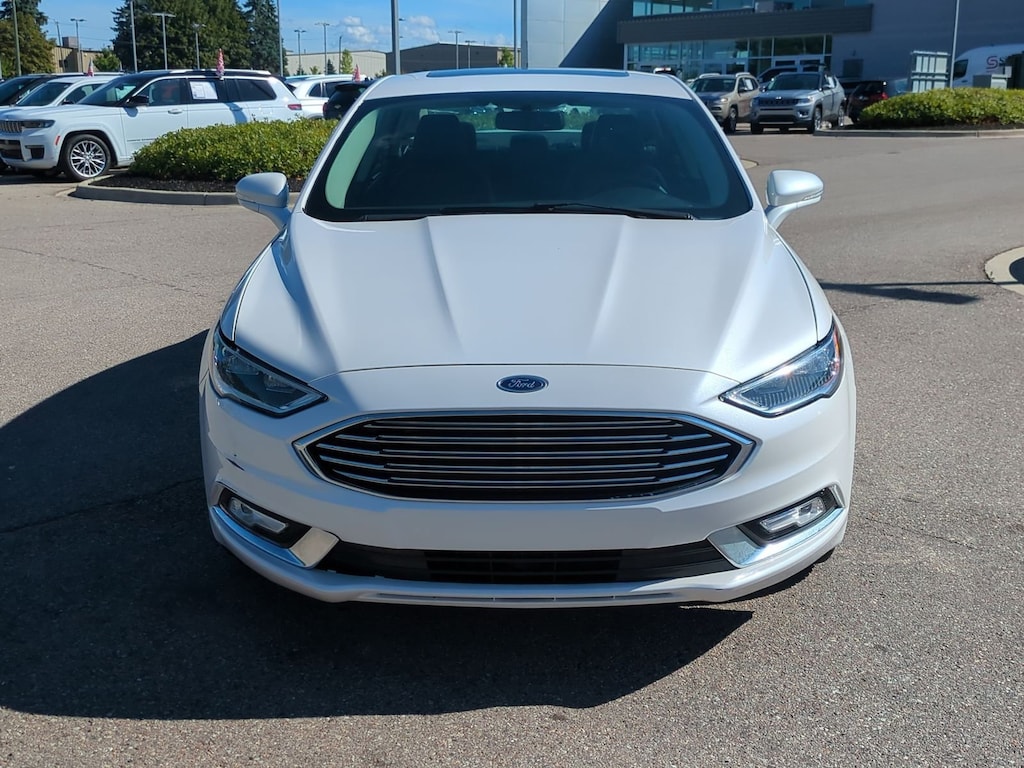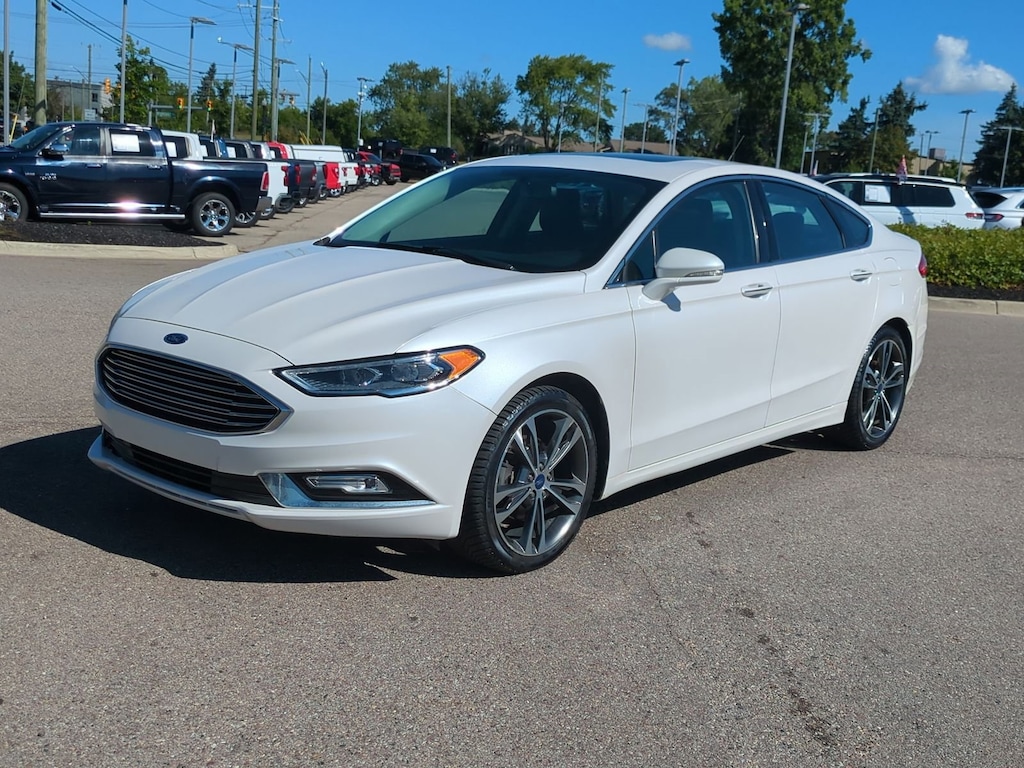 2017 Ford Fusion Titanium White Platinum Metallic Tri-Coat FWD AM/FM radio: SiriusXM, Automatic temperature control, Equipment Group 300A, Exterior Parking Camera Rear, Front dual zone A/C, Front fog lights, Fully automatic headlights, Heated front seats, Navigation System, Power driver seat, Power Moonroof, Power passenger seat, Radio: AM/FM Stereo/MP3/Single-CD, SiriusXM Radio, Speed-Sensitive Wipers, Steering wheel mounted audio controls, SYNC 3 Communications & Entertainment System, Telescoping steering wheel, Turn signal indicator mirrors, Universal Garage Door Opener, Wheels: 19" Machined-Alum. Prem. Painted Stainless.