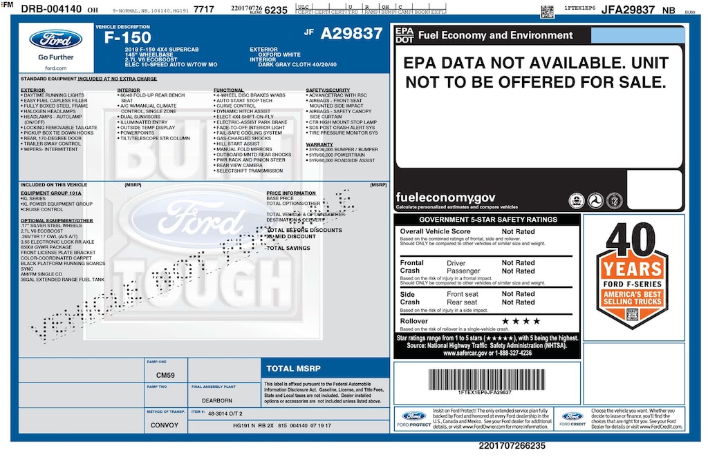 Clean CARFAX. 2018 Ford F-150 XL Is nicely equipped with Equipment Group 101A Mid (4.2" Productivity Screen in Instrument Cluster, Cruise Control, Radio: AM/FM Stereo/Single-CD Player, and SYNC), GVWR: 6,500 lbs Payload Package, XL Power Equipment Group (Illuminated Entry, MyKey, Perimeter Alarm, Power Door Locks, Power Front & Rear Windows, Power Glass Sideview Mirrors w/Black Skull Caps, and Power Tailgate Lock), 4WD, 4-Wheel Disc Brakes, 6 Speakers, ABS brakes, Air Conditioning, AM/FM radio, Black Platform Running Boards, Brake assist, Class IV Trailer Hitch Receiver, Cloth 40/20/40 Front Seat, Compass, Delay-off headlights, Driver door bin, Dual front impact airbags, Dual front side impact airbags, Electronic Stability Control, Exterior Parking Camera Rear, Front anti-roll bar, Front Center Armrest, Front wheel independent suspension, Fully automatic headlights, Low tire pressure warning, Occupant sensing airbag, Outside temperature display, Overhead airbag, Passenger door bin, Passenger vanity mirror, Power steering, Radio: AM/FM Stereo w/6 Speakers, Radio: Single-CD/SiriusXM w/7 Speakers, Rear step bumper, Speed-sensing steering, Split folding rear seat, SYNC 3, Tachometer, Telescoping steering wheel, Tilt steering wheel, Traction control, Variably intermittent wipers, Voltmeter, Wheels: 17" Silver Painted Aluminum, and Wheels: 17" Silver Steel.