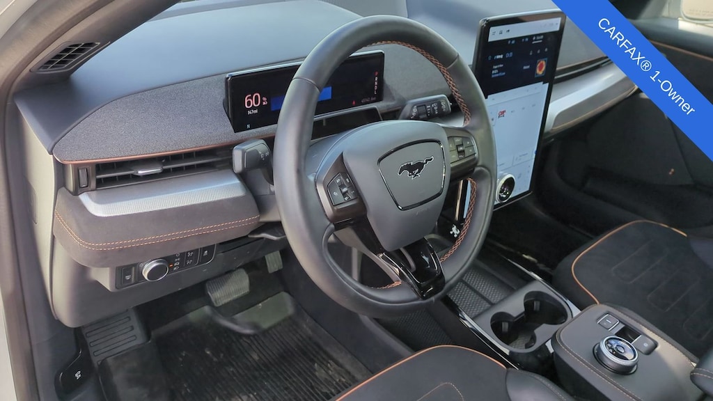 Recent Arrival! 2021 Ford Mustang Mach-E GT Is nicely equipped with Equipment Group 400A, Ford Co-Pilot360 Active 2.0 (360 Degree Camera, Active Park Assist 2.0, and BlueCruise Hands-Free Driving), Interior Protection Package (Pre-Installed) (Cargo Area Protector and Front & Rear Floor Liners), Navigation system: Connected Navigation, 10 Speakers, 4-Wheel Disc Brakes, ABS brakes, Air Conditioning, Alloy wheels, AM/FM radio: SiriusXM, AM/FM Stereo, Apple CarPlay/Android Auto, Auto High-beam Headlights, Auto-dimming Rear-View mirror, Automatic temperature control, Axle Ratio: 9.05, Brake assist, Bumpers: body-color, Compass, Delay-off headlights, Driver door bin, Driver vanity mirror, Dual front impact airbags, Dual front side impact airbags, Electronic Stability Control, Emergency communication system: 911 Assist, Exterior Parking Camera Rear, Four wheel independent suspension, Front anti-roll bar, Front Bucket Seats, Front Center Armrest, Front dual zone A/C, Front reading lights, Fully automatic headlights, Garage door transmitter, Heated ActiveX Sport Seats, Heated door mirrors, Heated front seats, Heated steering wheel, Illuminated entry, Knee airbag, Low tire pressure warning, Memory seat, Occupant sensing airbag, Outside temperature display, Overhead airbag, Overhead console, Panic alarm, Panoramic Fixed-Glass Roof, Passenger door bin, Passenger vanity mirror, Power door mirrors, Power driver seat, Power Liftgate, Power passenger seat, Power steering, Power windows, Radio data system, Rain sensing wipers, Rear anti-roll bar, Rear seat center armrest, Rear side impact airbag, Rear window defroster, Rear window wiper, Remote keyless entry, Security system, SiriusXM Radio w/360L, Speed control, Speed-sensing steering, Speed-Sensitive Wipers, Split folding rear seat, Spoiler, Steering wheel mounted audio controls, SYNC 4A w/Enhanced Voice Recognition, Telescoping steering wheel, Tilt steering wheel, Traction control, Trip computer, Turn signal indicator mirrors, and Variably intermittent wipers.