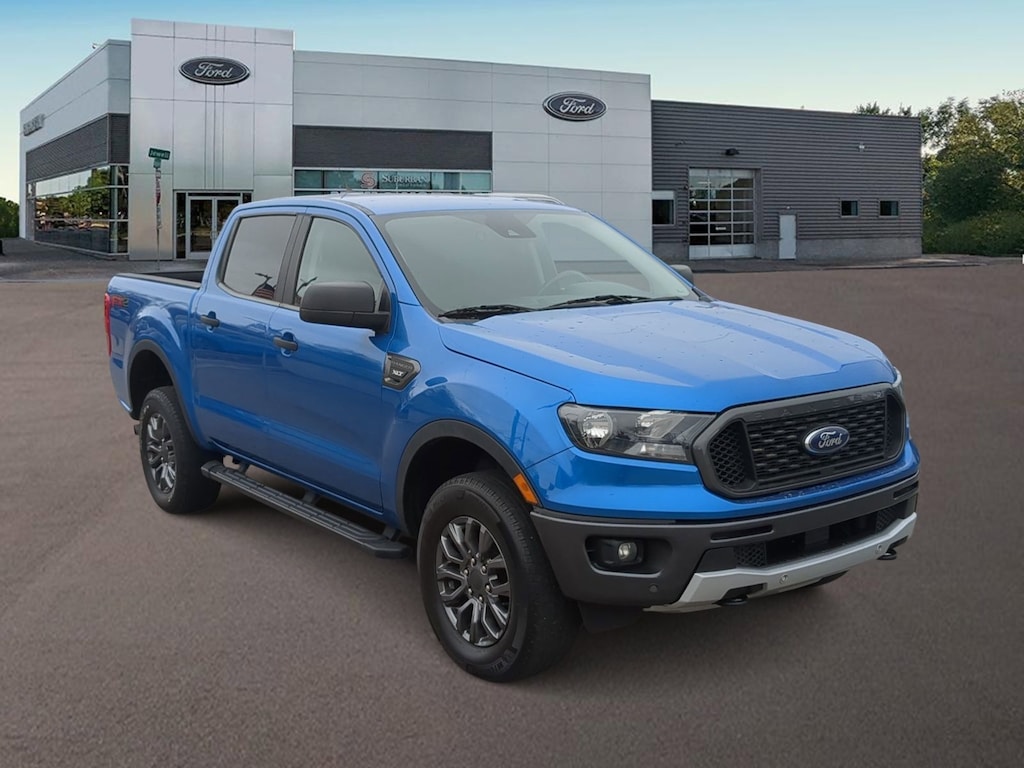 Blue 2021 Ford Ranger XLT RWD 10-Speed Automatic EcoBoost 2.3L I4 GTDi DOHC Turbocharged VCT CarFax Great Reliability, 110V AC Power Outlet, Adaptive Cruise Control, Auto-Dimming Rear-View Mirror, Electronic-Locking Rear Differential, Equipment Group 301A Mid, Exposed Front Tow Hooks, Exterior Parking Camera Rear, Forward Sensing System, Fully Automatic Headlights, FX2 Box Decal, FX2 Package, Leather-Wrapped Shifter, Leather-Wrapped Steering Wheel, Navigation, Off-Road Screen in Cluster, Off-Road Tuned Suspension, Reverse Sensing System, Sport Appearance Package, Technology Package, Wheels: 17" Magnetic Painted Aluminum Sport.