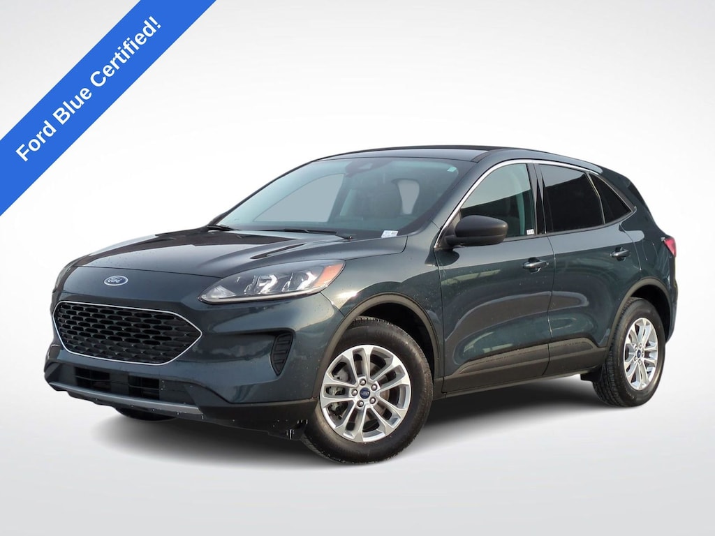 Certified. 2022 Ford Escape SE Is nicely equipped with Cold Weather Package (Electronic Automatic Temperature Control (EATC), Heated & Premium Wrapped Steering Wheel, Heated Front Row Seats, Heated Sideview Mirrors, and Remote Start System w/86C), Convenience Package (8-Way Power Driver Seat, Dual-Zone Electronic Automatic Temperature Control, Fold-Down Rear Center Armrest w/2 Cupholders, Halogen Projector Headlamps w/LED Signature, and Power Liftgate), Equipment Group 200A, Ford Blue Advantage: Blue Certified Certified, AWD, 3.81 Axle Ratio, 4-Wheel Disc Brakes, 4G LTE Wi-Fi Hotspot Removal, 6 Speakers, ABS brakes, Air Conditioning, Alloy wheels, AM/FM radio: SiriusXM, AM/FM Stereo, Auto High-beam Headlights, Brake assist, Bumpers: body-color, Compass, Delay-off headlights, Driver door bin, Driver vanity mirror, Dual front impact airbags, Dual front side impact airbags, Electronic Stability Control, Emergency communication system: SYNC 3 911 Assist, Exterior Parking Camera Rear, FordPass Connect, Four wheel independent suspension, Front anti-roll bar, Front Bucket Seats, Front Center Armrest, Front reading lights, Fully automatic headlights, Illuminated entry, Knee airbag, Low tire pressure warning, Occupant sensing airbag, Outside temperature display, Overhead airbag, Overhead console, Panic alarm, Passenger door bin, Passenger vanity mirror, Power door mirrors, Power steering, Power windows, Radio data system, Rear anti-roll bar, Rear reading lights, Rear window defroster, Rear window wiper, Remote keyless entry, Speed control, Speed-sensing steering, Speed-Sensitive Wipers, Split folding rear seat, Spoiler, Steering wheel mounted audio controls, SYNC 3 Communications & Entertainment System, Tachometer, Telescoping steering wheel, Tilt steering wheel, Traction control, Trip computer, Unique Cloth Front Bucket Seats, Variably intermittent wipers, and Wheels: 17" Shadow Silver-Painted Aluminum.