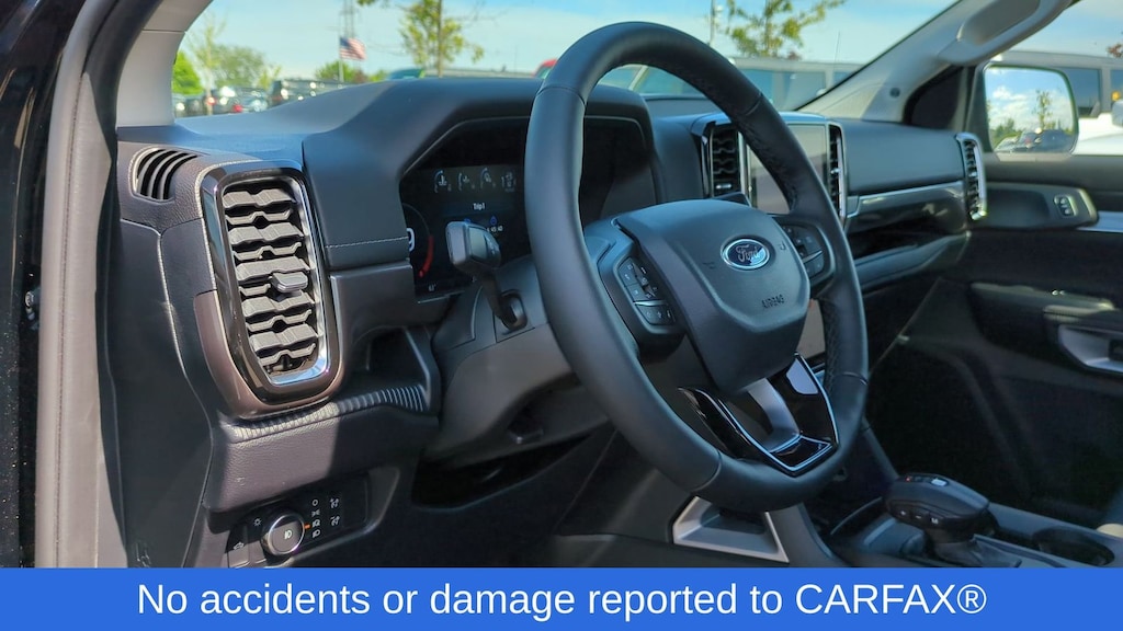 Recent Arrival! Clean CARFAX. 2024 Ford Ranger Lariat Is nicely equipped with Advanced Towing Package (Pro Trailer Backup Assist, Reverse Park Aid w/Trailer Guidance, and Trailer Brake Controller), Equipment Group 500A Standard, Sport Appearance Package (Gray Painted Center Bar & Grille Surround, Gray Painted Front Fascia & Rear Bumper, Gray Painted Wheel Lip Molding, and Sport Box Decal), Trailer Tow Package (Class IV Trailer Hitch Receiver), 4WD, 10 Speakers, 4-Wheel Disc Brakes, ABS brakes, Air Conditioning, Alloy wheels, AM/FM radio: SiriusXM, Auto High-beam Headlights, Auto-dimming Rear-View mirror, Automatic temperature control, Brake assist, Compass, Delay-off headlights, Driver door bin, Driver vanity mirror, Dual front impact airbags, Dual front side impact airbags, Electronic Stability Control, Emergency communication system: SYNC 4 911 Assist, Exterior Parking Camera Rear, Front anti-roll bar, Front Bucket Seats, Front Center Armrest, Front dual zone A/C, Front fog lights, Front reading lights, Front wheel independent suspension, Fully automatic headlights, Garage door transmitter, Heated door mirrors, Heated front seats, Heated steering wheel, Illuminated entry, Leather Shift Knob, Leather steering wheel, Leather-Trimmed Front Heated Bucket Seats, Low tire pressure warning, Memory seat, Navigation system: Connected Navigation, Occupant sensing airbag, Outside temperature display, Overhead airbag, Overhead console, Panic alarm, Passenger door bin, Passenger vanity mirror, Power door mirrors, Power driver seat, Power passenger seat, Power steering, Power windows, Radio: B&O Sound System by Bang & Olufsen, Rain sensing wipers, Rear reading lights, Rear seat center armrest, Rear step bumper, Rear window defroster, Remote keyless entry, Security system, SiriusXM Satellite Radio, Speed control, Speed-sensing steering, Steering wheel mounted audio controls, SYNC 4A w/Connected Built-In Navigation, Telescoping steering wheel, Tilt steering wheel, Traction control, Trip computer, Turn signal indicator mirrors, Variably intermittent wipers, Voltmeter, and Wheels: 18" Machined Aluminum w/Dark Pockets.