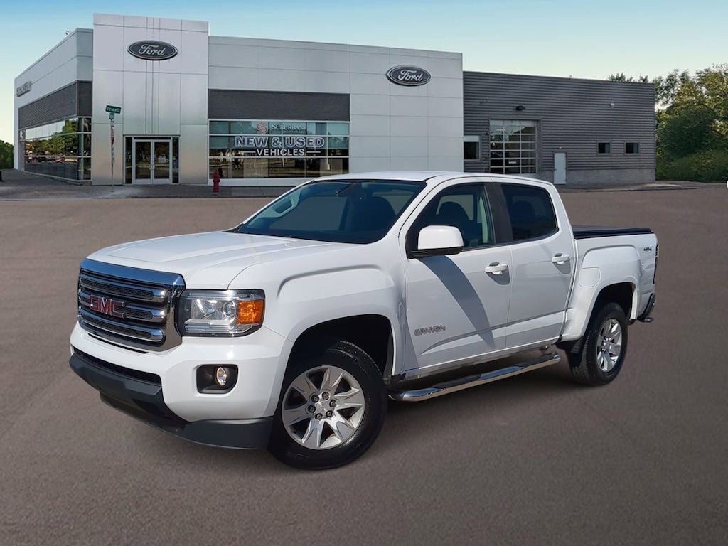 Summit White 2018 GMC Canyon SLE1 4WD 8-Speed Automatic V6 4WD, AM/FM Radio: SiriusXM, Exterior Parking Camera Rear, Fully Automatic Headlights, Heated External Mirrors, Manual Rear-Sliding Window, Power Door Mirrors, Radio: AM/FM Stereo w/8" Color Touch Screen, Rear Window Defroster, Remote Vehicle Starter System, Single-Zone Auto Climate Control Air Conditioning, SiriusXM Satellite Radio, SLE Convenience Package, Trailering Package.