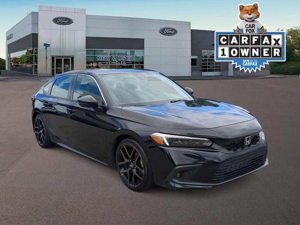 Crystal Black Pearl 2022 Honda Civic Sport Touring FWD CVT 1.5L I4 DOHC 16V Clean CarFax, CarFax One Owner Vehicle, Black w/Leather-Trimmed Seating Surfaces, Adaptive Cruise Control: Adaptive Cruise Control (ACC) with Low-Speed Follow, AM/FM Radio: SiriusXM, Apple CarPlay/Android Auto, Auto High-beam Headlights, Auto-dimming Rear-View mirror, Automatic Temperature Control, Blind Spot Information (BSI) System warning, Bose Premium Audio System, Exterior Parking Camera Rear, Forward collision: Collision Mitigation Braking System (CMBS) + FCW mitigation, Front Dual Zone A/C, Fully Automatic Headlights, Heated External Mirrors, Heated Front Seats, Lane departure: Lane Keeping Assist System (LKAS) active, Navigation system: Honda Satellite-Linked Navigation System, Power Door Mirrors, Power Driver Seat, Power Moonroof, Power Passenger Seat, Rear Window Defroster, Remote Keyless Entry.