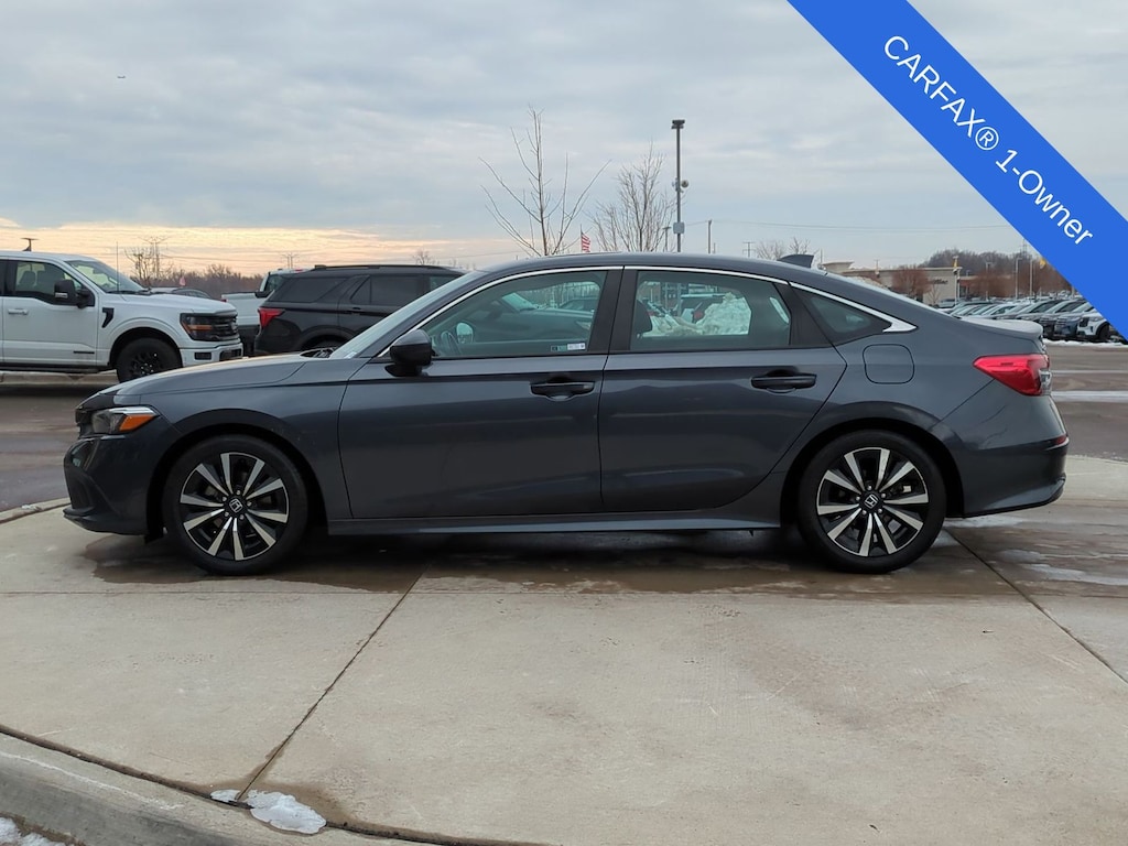 Clean CARFAX. 2022 Honda Civic EX Is nicely equipped with Gray Cloth, 4-Wheel Disc Brakes, 8 Speakers, ABS brakes, Adaptive Cruise Control: Adaptive Cruise Control (ACC) with Low-Speed Follow, Air Conditioning, Alloy wheels, AM/FM radio, Apple CarPlay/Android Auto, Auto High-beam Headlights, Automatic temperature control, Blind Spot Information (BSI) System warning, Brake assist, Bumpers: body-color, Cloth Seat Trim, Delay-off headlights, Driver door bin, Driver vanity mirror, Dual front impact airbags, Dual front side impact airbags, Electronic Stability Control, Emergency communication system: HondaLink, Exterior Parking Camera Rear, Forward collision: Collision Mitigation Braking System (CMBS) + FCW mitigation, Four wheel independent suspension, Front anti-roll bar, Front Bucket Seats, Front Center Armrest, Front dual zone A/C, Front reading lights, Fully automatic headlights, Heated door mirrors, Heated Front Bucket Seats, Heated front seats, Illuminated entry, Knee airbag, Leather Shift Knob, Leather steering wheel, Low tire pressure warning, Occupant sensing airbag, Outside temperature display, Overhead airbag, Overhead console, Panic alarm, Passenger door bin, Passenger vanity mirror, Power door mirrors, Power moonroof, Power steering, Power windows, Radio data system, Radio: 180-Watt AM/FM Audio System, Rear anti-roll bar, Rear seat center armrest, Rear side impact airbag, Rear window defroster, Remote keyless entry, Security system, Speed control, Speed-sensing steering, Split folding rear seat, Steering wheel mounted audio controls, Tachometer, Telescoping steering wheel, Tilt steering wheel, Traction control, Trip computer, Variably intermittent wipers, and Wheels: 17" Alloy w/Gloss Black Inserts.