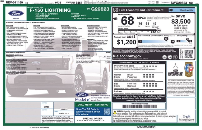 - Fuel Efficiency : 76.0 MPG City 61.0 MPG Hwy