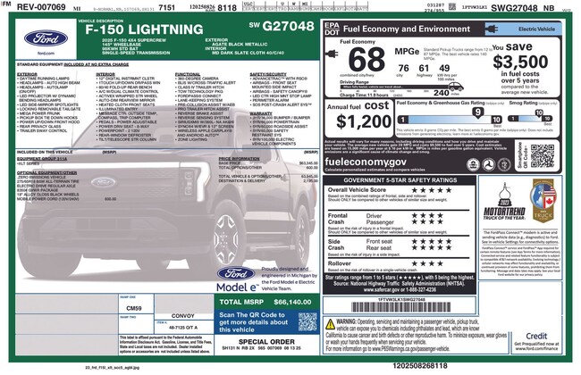 - Fuel Efficiency : 76.0 MPG City 61.0 MPG Hwy