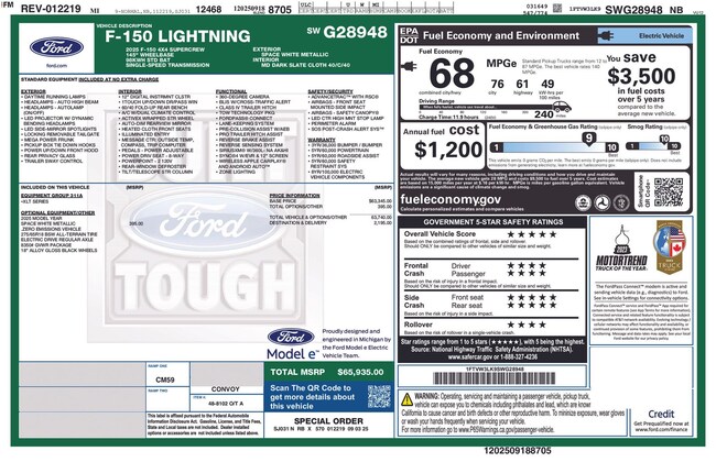 - Fuel Efficiency : 76.0 MPG City 61.0 MPG Hwy